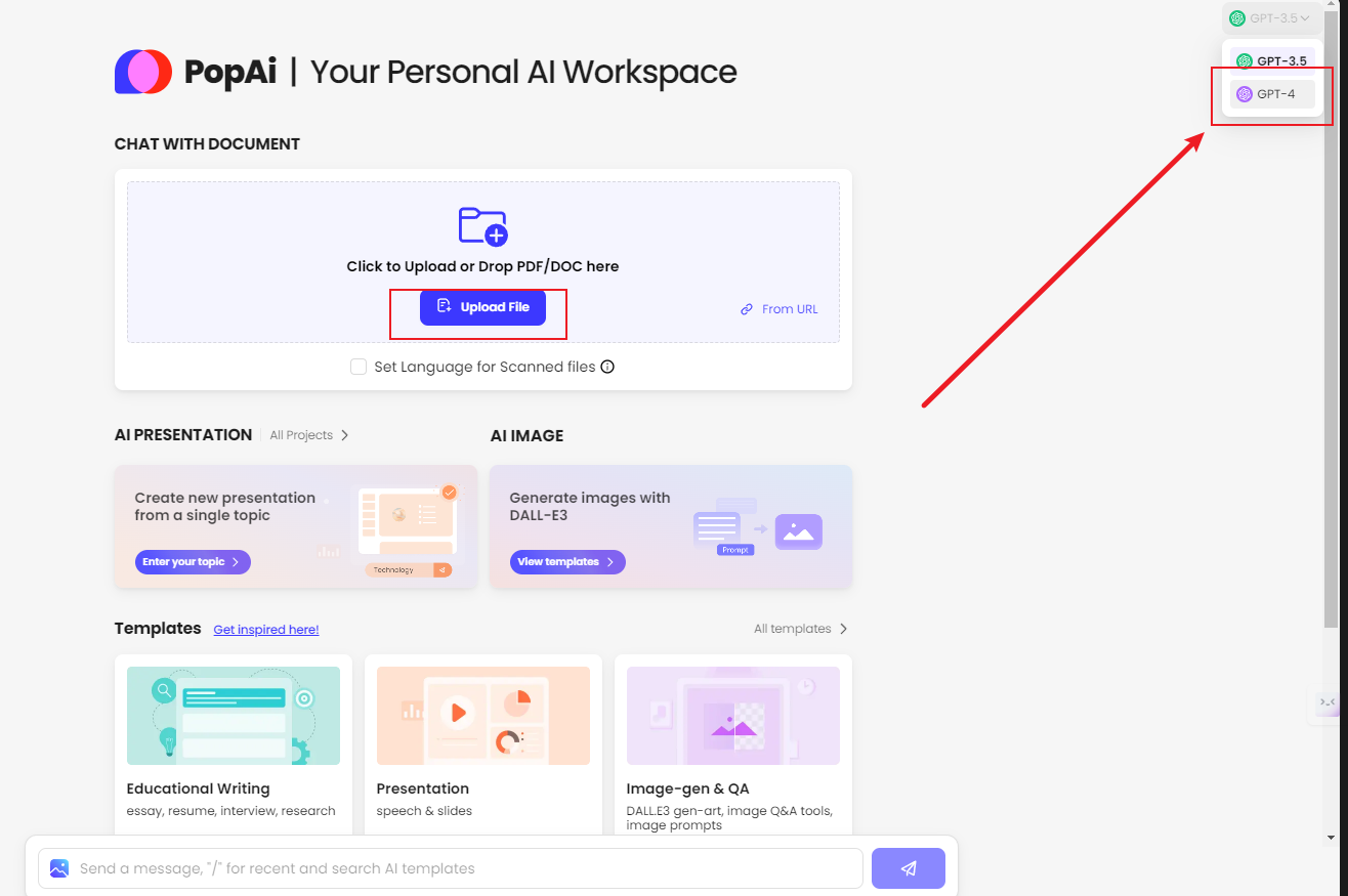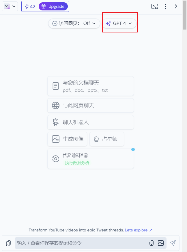 使用界面如下,可以上传 pdf、doc、txt 等文件,也可以生成图片等 AI 功能。