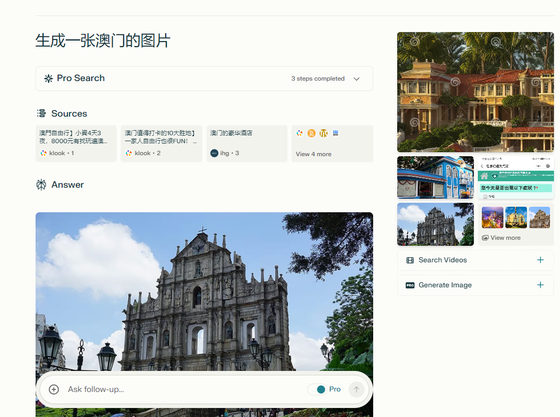 - Pro Search:提供更强大的搜索功能,可以帮助您找到更准确、更相关的信息,还可以生成图片。(其实就是 chatgpt-4)。
