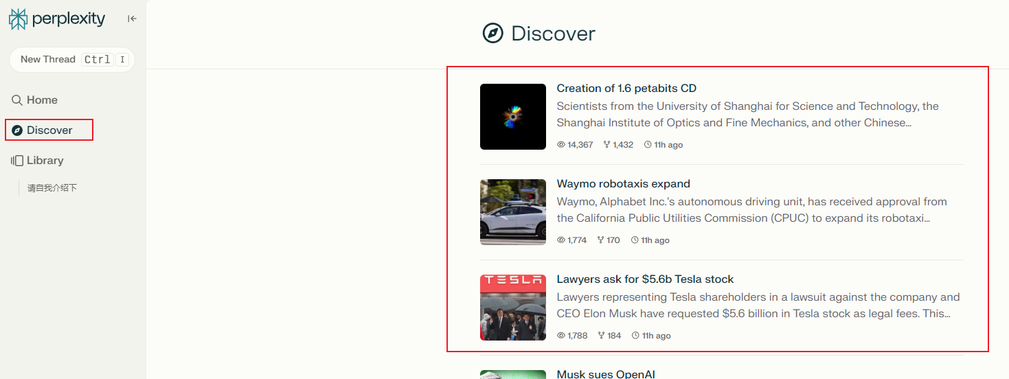 此外还可以在 discover 里看到当前最新的 AI 新闻。